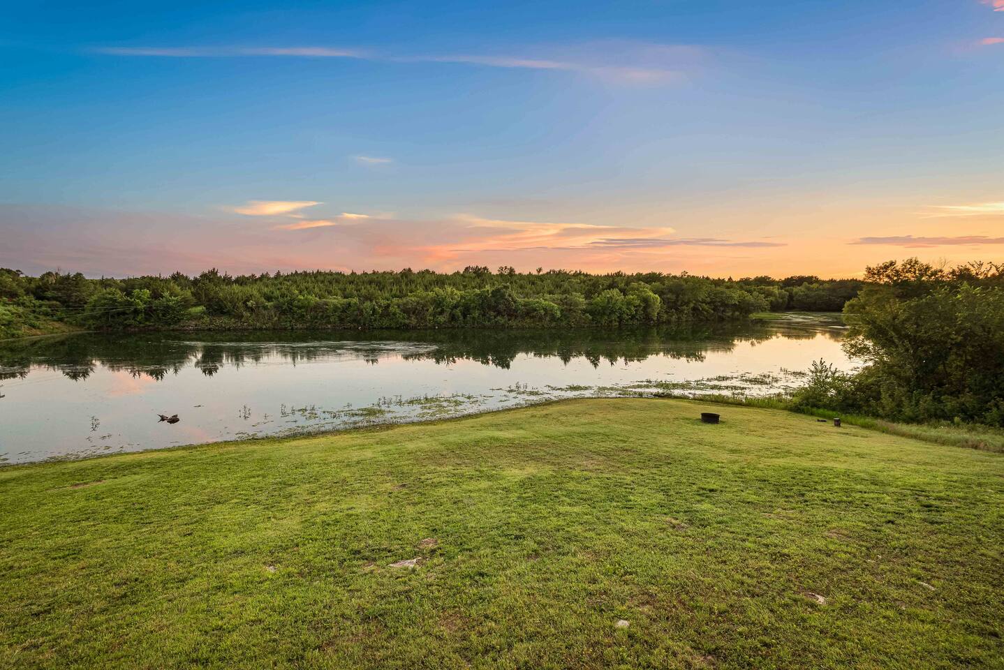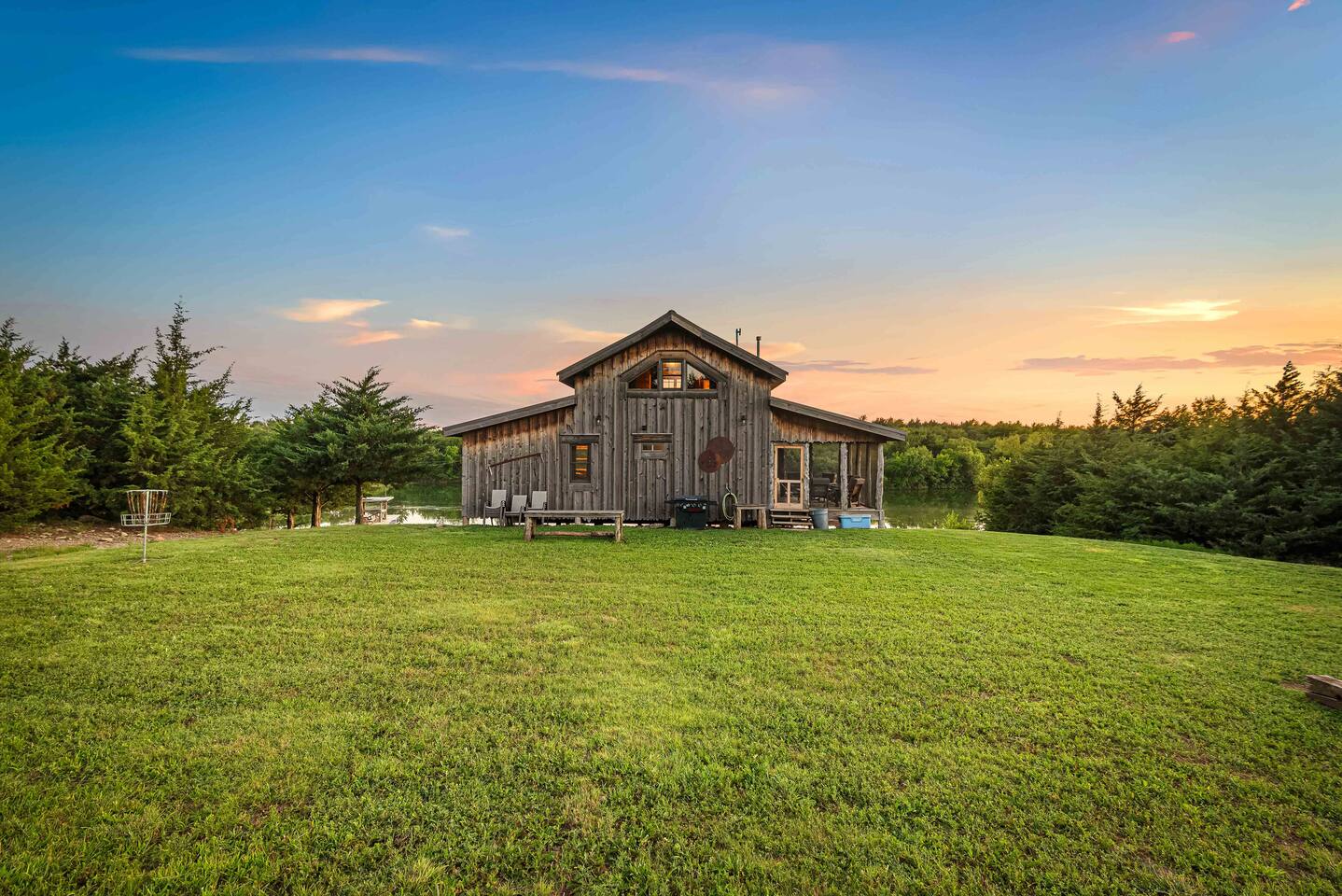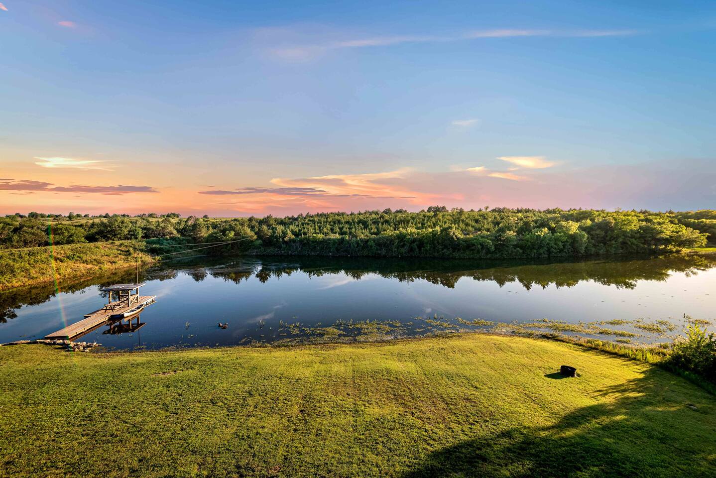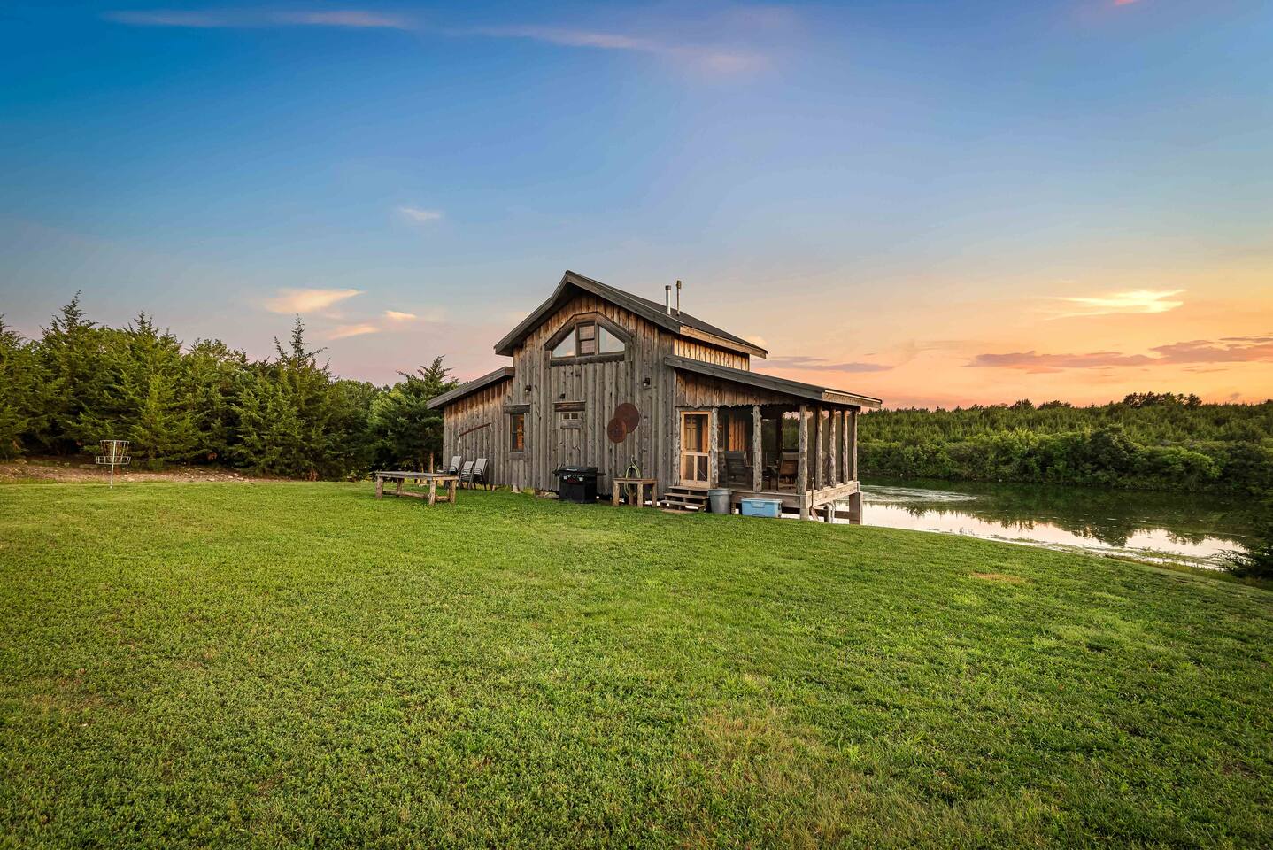 The cabin sits in the middle of 400 acres of pasture. Cattle are grazed there six months out of the year. You are welcome to roam wherever you'd like. We just ask that you stay inside the fence. The owners do live on the property, but their house is at the other end of the pasture and not visible from the cabin. Feel free to swim and fish in the pond! Catch and release fishing only, though! Life jackets MUST be worn by ALL while down on the dock and on watercraft.