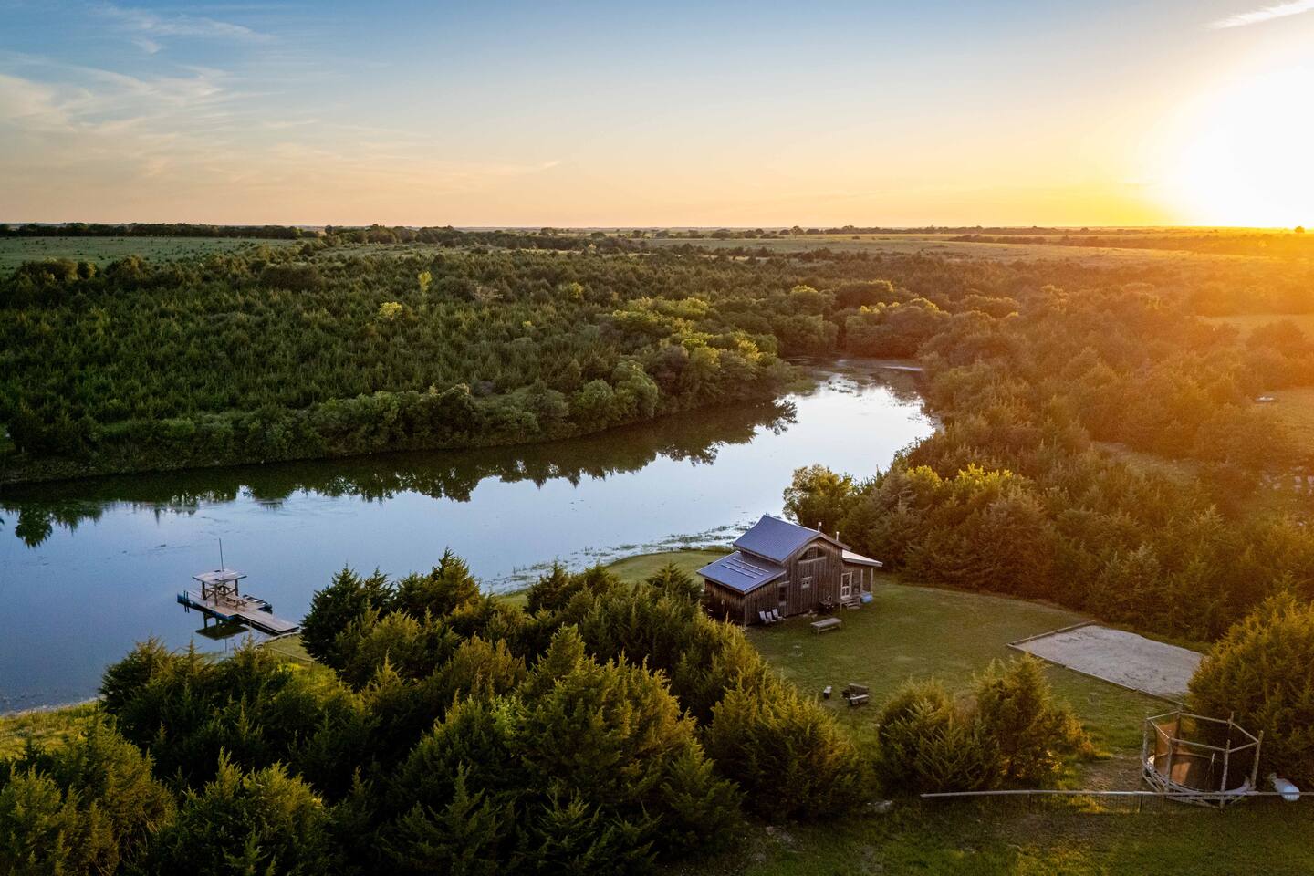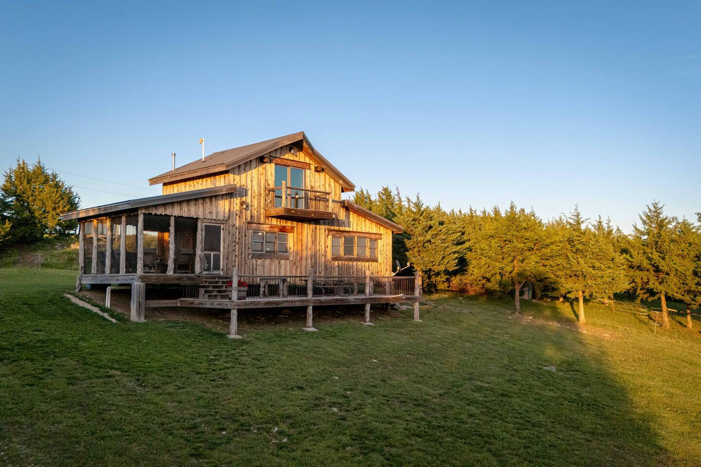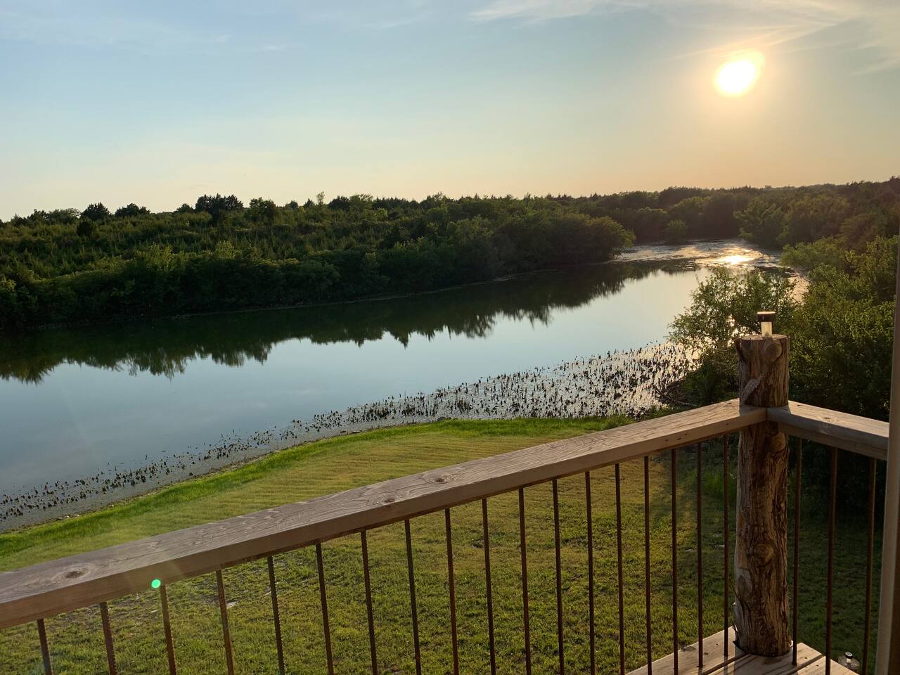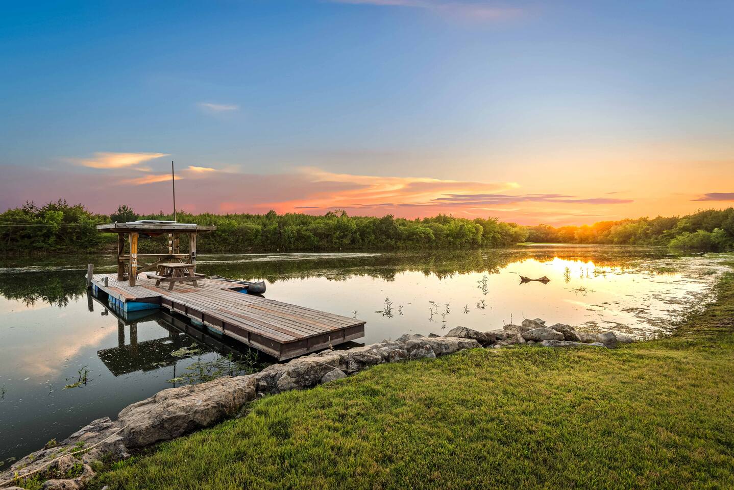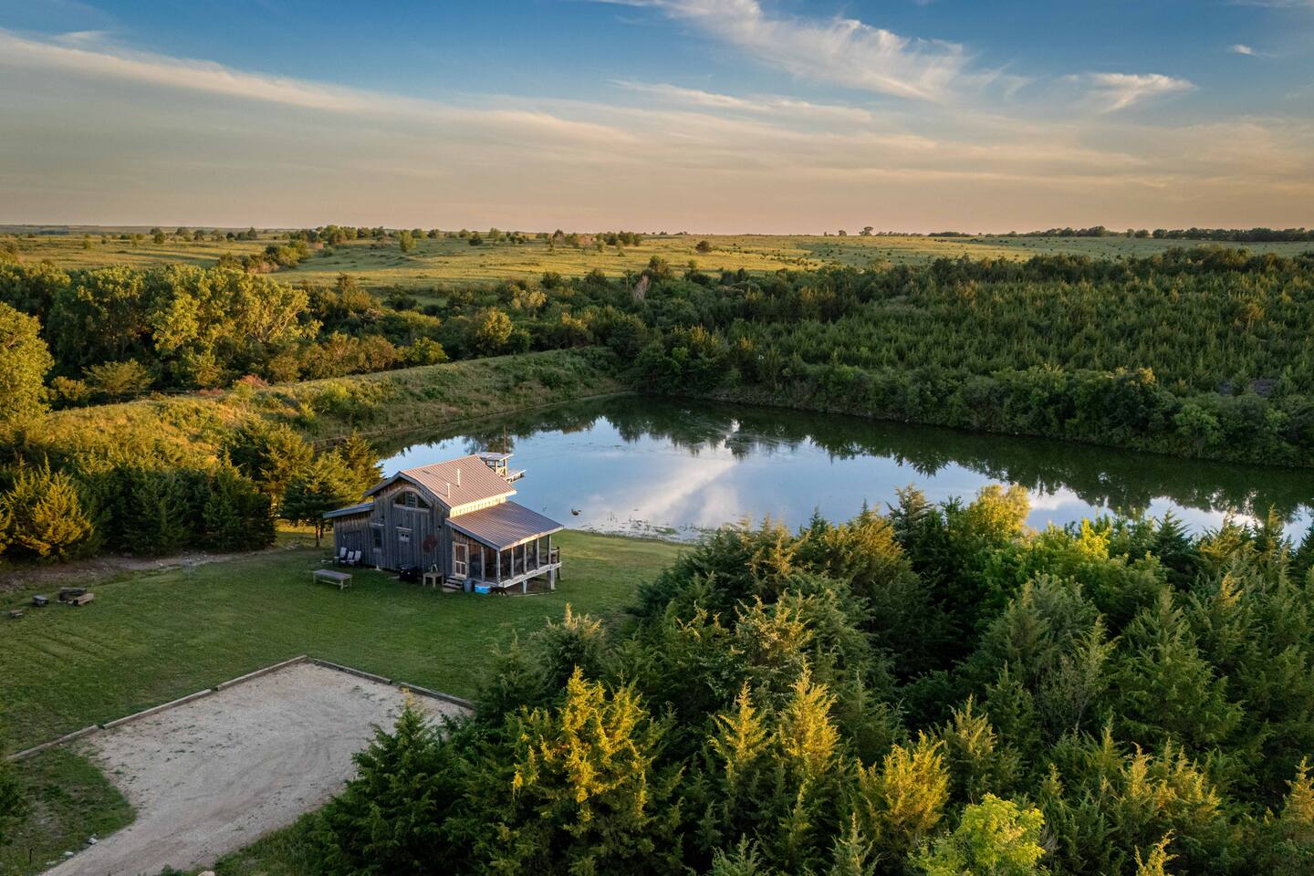 The cabin sits in the middle of 400 acres of pasture. Cattle are grazed there six months out of the year. You are welcome to roam wherever you'd like. We just ask that you stay inside the fence. The owners do live on the property, but their house is at the other end of the pasture and not visible from the cabin. Feel free to swim and fish in the pond! Catch and release fishing only, though! Life jackets MUST be worn by ALL while down on the dock and on watercraft.