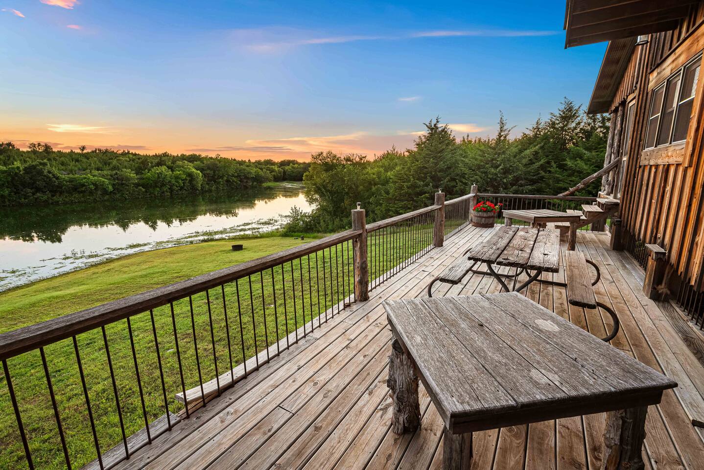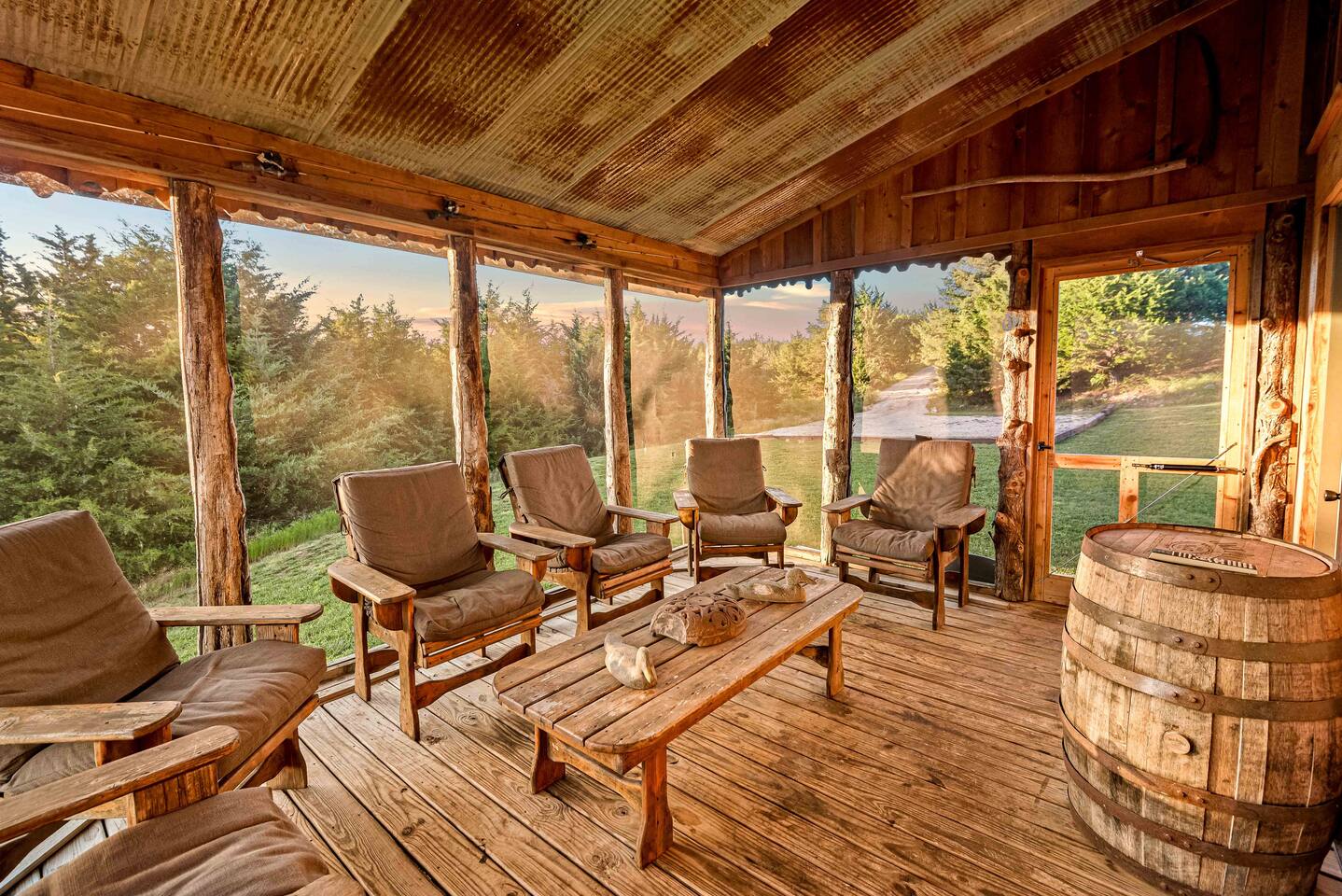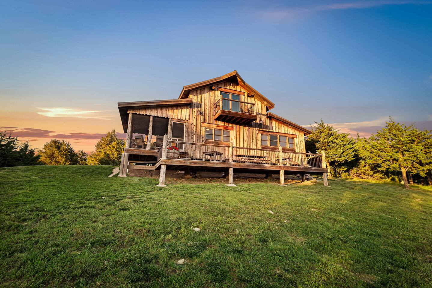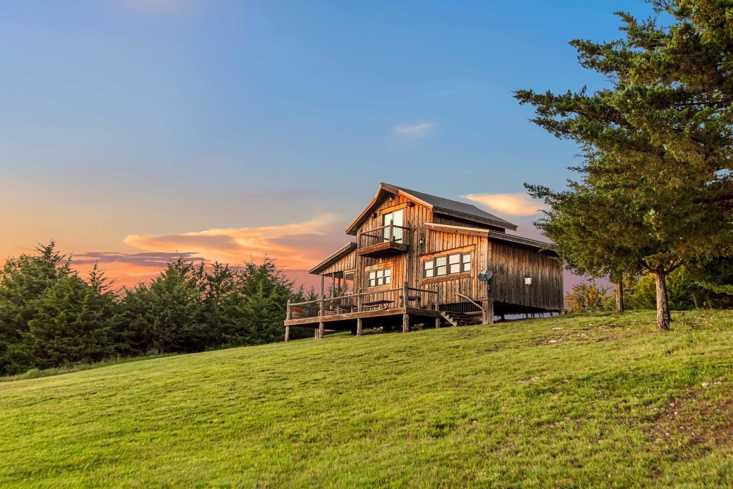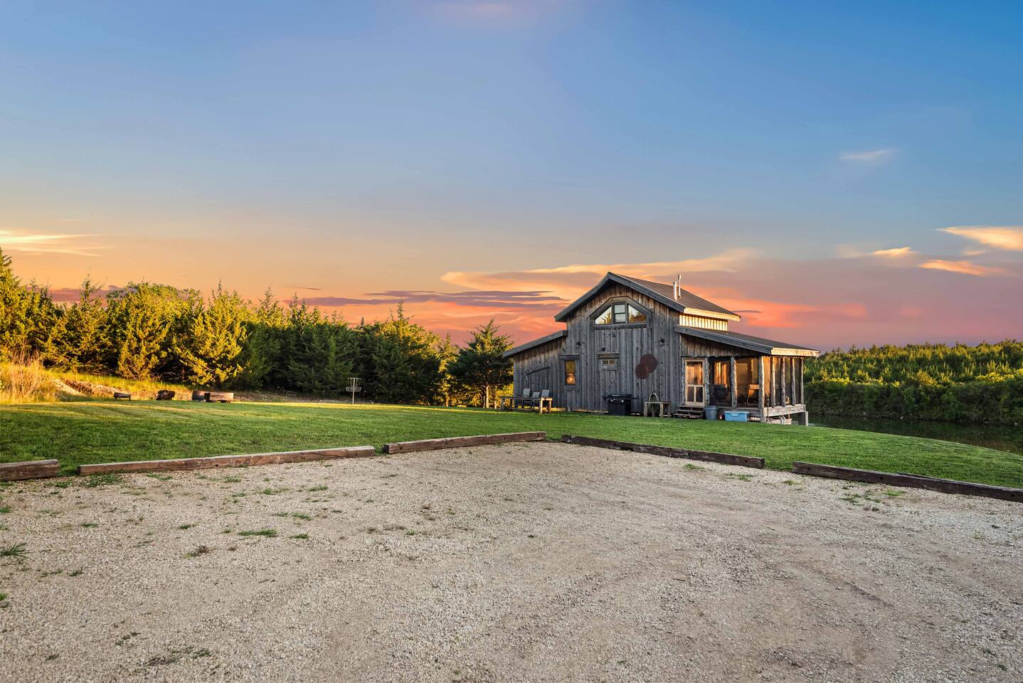 The cabin sits in the middle of 400 acres of pasture. Cattle are grazed there six months out of the year. You are welcome to roam wherever you'd like. We just ask that you stay inside the fence. The owners do live on the property, but their house is at the other end of the pasture and not visible from the cabin. Feel free to swim and fish in the pond! Catch and release fishing only, though! Life jackets MUST be worn by ALL while down on the dock and on watercraft.