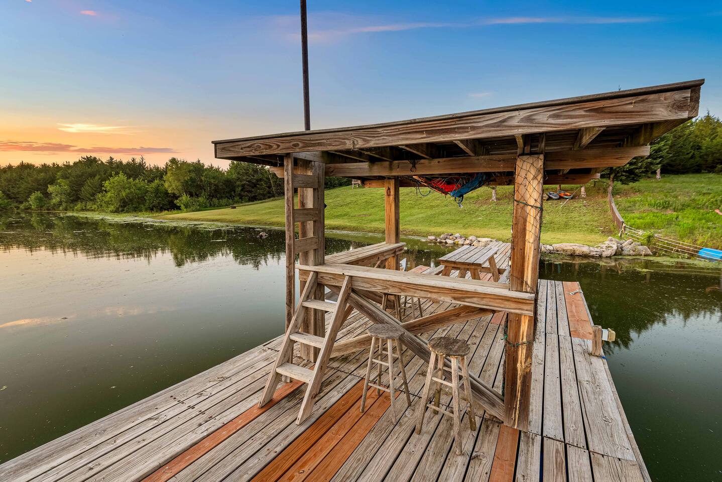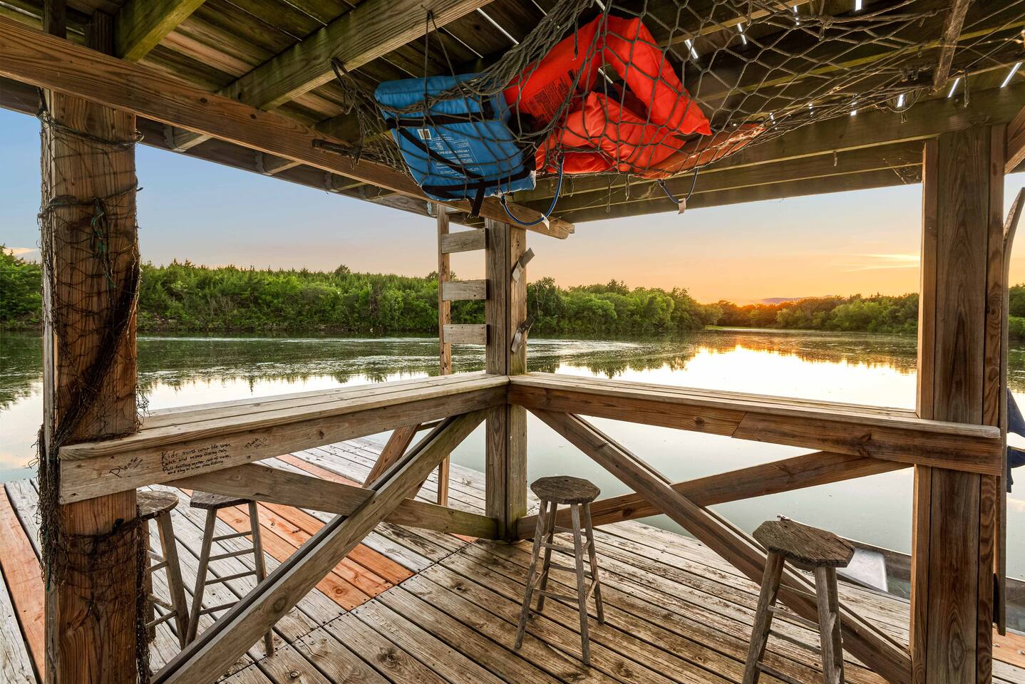 Provided with your stay: access to a Jon boat, 2 adult kayaks, 2 kid kayaks and a canoe.