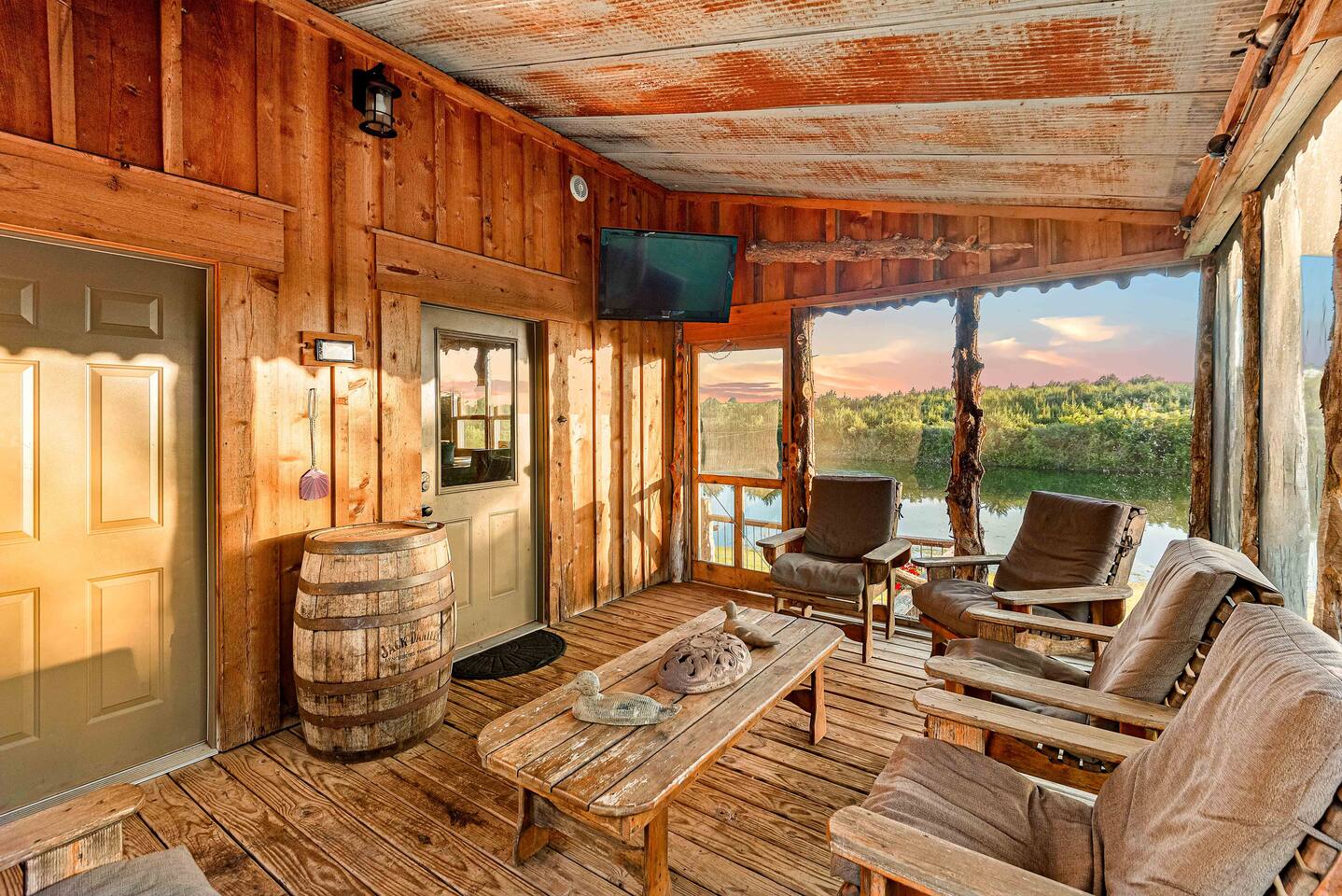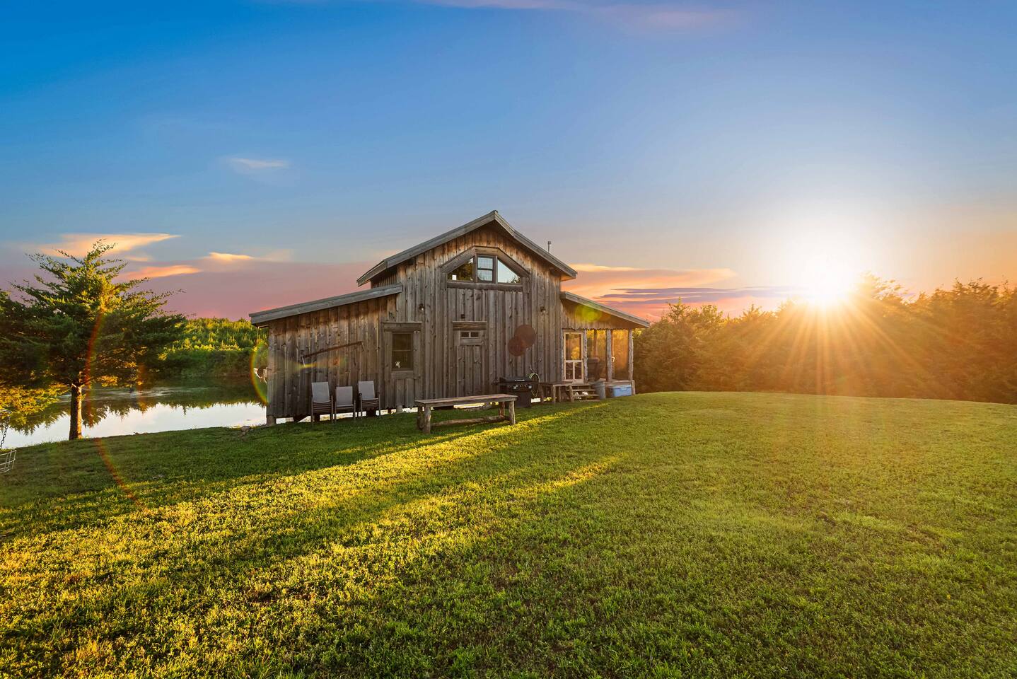 Escape to this peaceful cabin nestled on a PRIVATE four-acre pond, offering an ultimate getaway. Fire up the propane grill for a family BBQ, gather around the campfire, or let the kids have fun on the trampoline. Enjoy fishing from the dock or swim in the peaceful waters. Unwind on the screened-in porch, and when it’s time to rest, enjoy the comfort of AC, heating, or a cozy fireplace. With total privacy and nature at your doorstep, you’ll be fully immersed in the serenity of the outdoors.